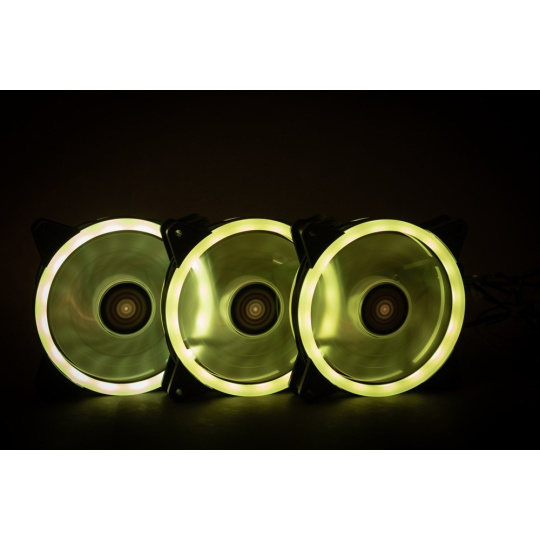 1stCOOL KIT AURA EVO4 ARGB, 3x Dual Ring ventilátor + ARGB Nano / Reset řadič. Kompletní set umožňuje i připojení jakéhokoli dalšího ARGB příslušenství vybaveného standardním 3pin ARGB konektorem.