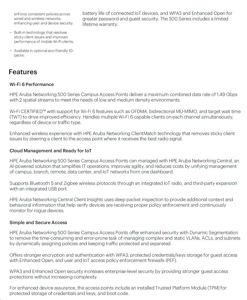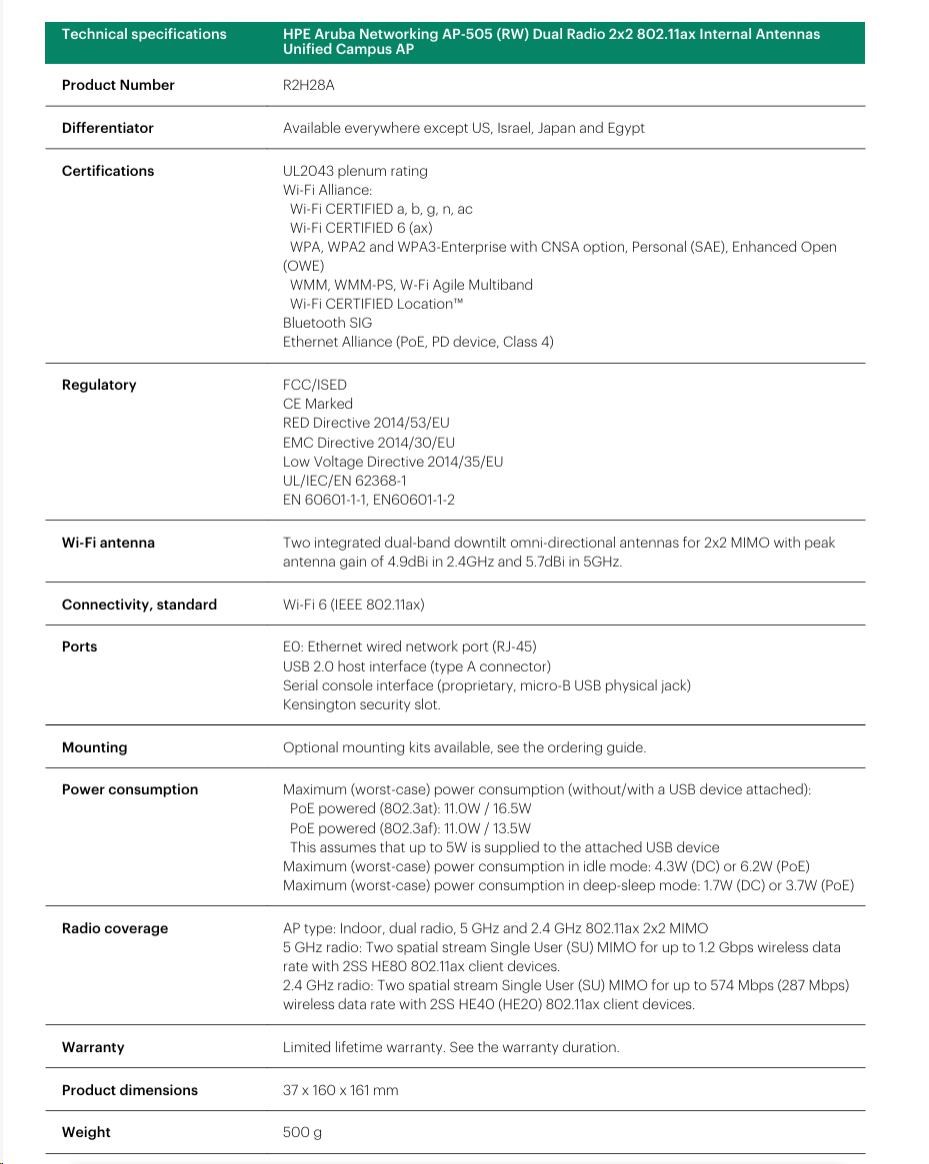 Odkaz na web výrobce: https://www.arubanetworks.com/assets/ds/DS_AP500Series.pdf