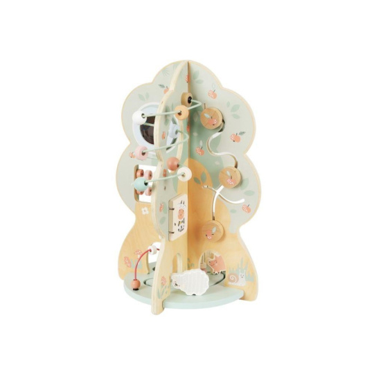 Activity board v podobě stromu zavede holčičky i chlapce na farmu, kde si pohrají s hracími prvky a zvířátky, která mohou vidět ve svém okolí, na venkově, na farmě. Příjemné pastelové barvy a motiv zvířátek dodávají hračce lákavý vzhled a lákají k pečlivému prozkoumání. Activity board strom vede děti k samostatnosti ve hře, v poznávání a učení se, zdokonaluje dětské dovednosti..