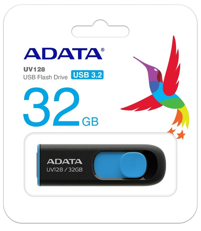 ADATA Flash Disk 32GB UV128, USB 3.1 Dash Drive (R:40/W:25 MB/s) černá/modrá
