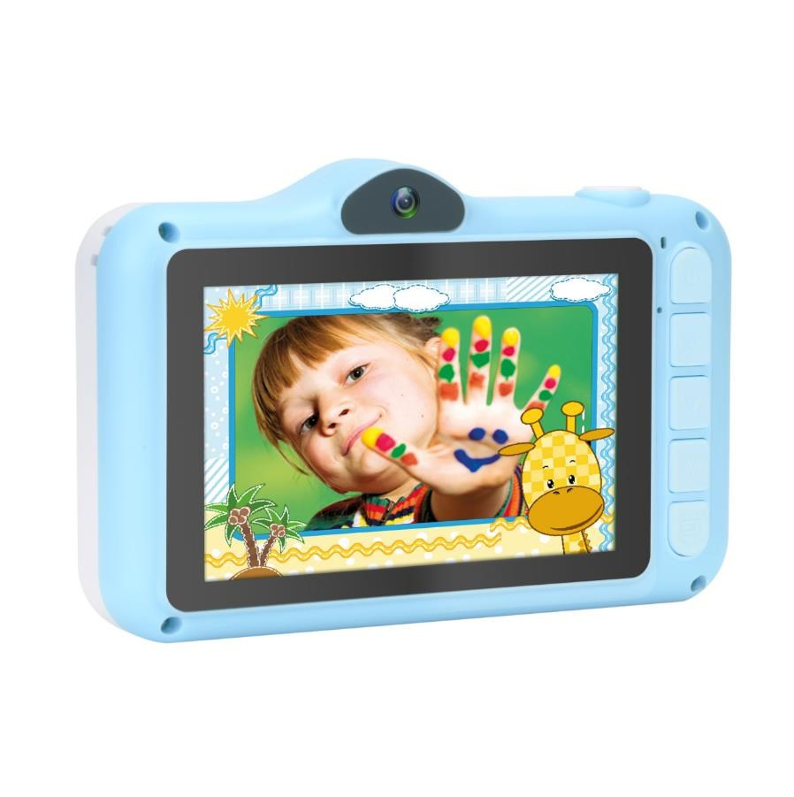 Realikids Cam 2 je ideální digitální fotoaparát pro děti. Jeho CMOS snímač umožňuje pořizovat nádherné fotografie a videa v HD. Má 3,5" LCD displej, na kterém si můžete prohlédnout vaše fotografie. Má také port pro micro SD karty až do 32 GB (není součástí dodávky). Jeho zábavný a ergonomický design zaručuje dokonalé uchopení a potěší každého malého fotografa.