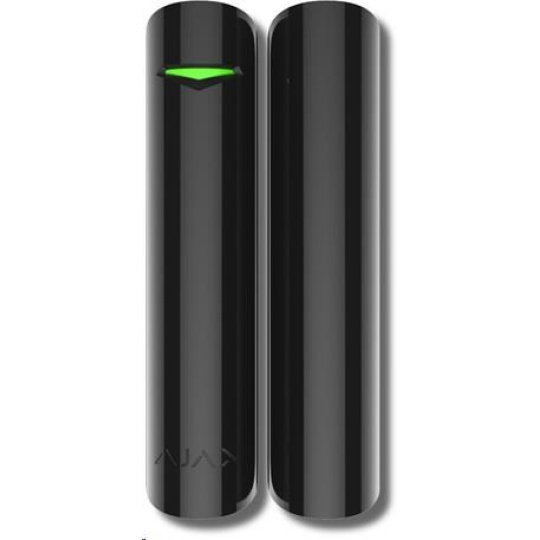 Ajax DoorProtect - Univerzální detektor otevření oken a dveří Ajax DoorProtect díky miniaturním high-end senzorům a bezdrát ovékomunikaci umožňuje zabezpečení oken a dveří na několika podlažích budovy.  Vlastnosti: Maximální výkon: Bezdrátová technologie Jeweller umožňuje komunikaci s Ajax Hubem až na vzdálenost 1 200 m v otevřeném prostoru nebo přes několik podlaží výškové budovy. Možnost integrace do systémů jiných výrobců prostřednictvím integračních modulů Ajax (uartBridge / ocBridge Plus). NC kontakt pro připojení externího detektoru.  Ochrana proti selhání a sabotáži: Autentizace pro ochranu proti narušení. Kryt detektoru je chráněn proti sabotáži. Nastavitelný interval kontroly připojených komponentů v rozmezí 12 až 300 sekund. Vybaven systémy pro detekci a potlačení rušení pro maximální ochranu systému proti narušení. Šifrovaná komunikace.  Bezchybný provoz: Spolehlivý high-end jazýčkový kontakt vyrobený ve Spojeném království s více než 1 000 000 spínacími cykly bez selhání. Úspora energie díky automatické regulaci vysílacího výkonu v závislosti na vzdálenosti od Ajax Hubu. Obousměrná komunikace s Ajax Hubem pro snadné testování a nastavení. Výdrž baterie až 7 let při kontrole spojení Ajax Hubem každou 1 minutu.  Jednoduchá instalace na profesionální úrovni: Instalace pomocí držáku SmartBracket bez nutnosti demontování krytu detektoru. Detekční zóny a kvalitu připojení je možné vzdáleně otestovat prostřednictvím mobilní aplikace. Silný magnet umožňuje spolehlivou detekci otevření až na vzdálenost 20 milimetrů.  Technologický skvost: Miniaturní rozměry a silný magnet umožňují ochranu všech typů oken a dveří.  Technická specifikace: Typ detektoru: Bezdrátový Detekční element: Jazýčkový kontakt, magnet Použití: Vnitřní prostory Montáž: Povrchová Detekční vzdálenost: Až 10 mm (menší magnet), 20 mm (větší magnet) Připojení externího detektoru: Ano (1x NC kontakt) Výkon rádiového signálu: 8.76 dBm / 7.52 mW (max. 20 mW) Komunikační protokol: Jeweller (868.0 - 868.6 MHz) Dosah rádiového signálu: Až 1 200 m (v otevřeném prostoru) Napájení: 1x baterie CR123A 3 V DC Výdrž baterie: Až 7 let Provozní teplota: 0 °C ~ +50 °C Provozní vlhkost: Až 80 % Rozměry: 90 x 20 mm Hmotnost: 29 g Stupeň zabezpečení: 2 - nízké až střední riziko Třída prostředí: I. - vnitřní EAN kód: 0856963007040 (černá) Objednací kód: AJAX 7062 (černá)  Bližší informace naleznete na Smart alarm.