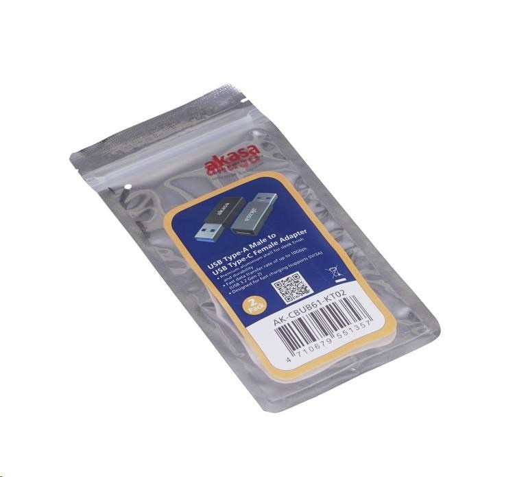 AKASA adaptér USB3.1 Gen2 Type-C na Type-A (F/M), 2ks v balení