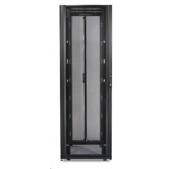 Široká skříň s možnostmi rozšířené správy kabelů pro servery s vysokou hustotou napájení a síťové komponenty. Výška 42U umožňuje snadný transport dveřmi.
