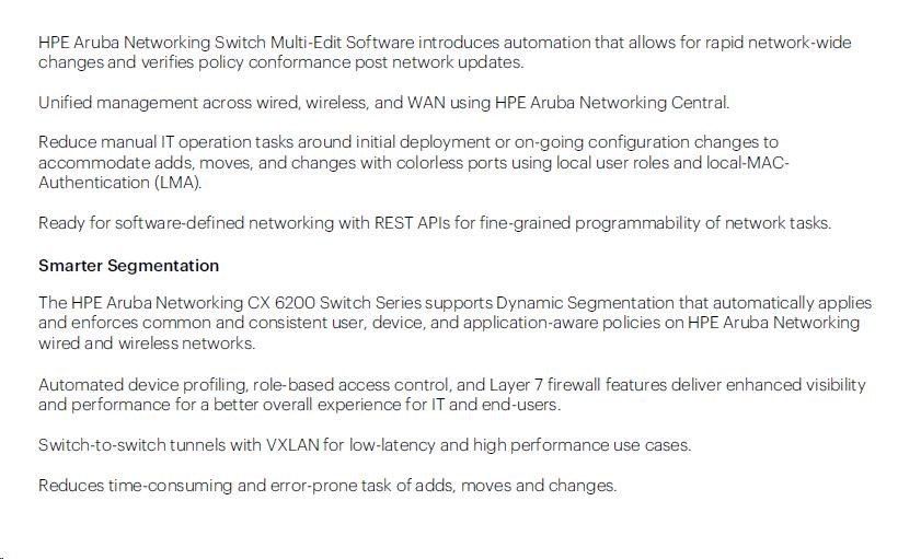 | HPE Aruba Networking CX 6200F 24G 4SFP+ Switch (JL724A) | ||