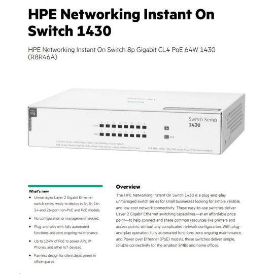 | Aruba Instant On 1430 8G Class4 PoE 64W Switch (R8R46A) | |