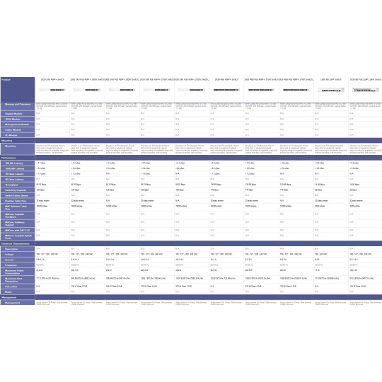 | Mounting | Mounts in an EIAstandard 19 in. telco rack or equipment cabinet. 2-post rack kit included Supports table-top mounting Supports rackmounting Supports wall-mounting with ports facing either up or down Supports under-table mounting using the brackets provided Must be mounted top surface up. To prevent possible impact to longterm reliability, product should not be mounted upside-down | |