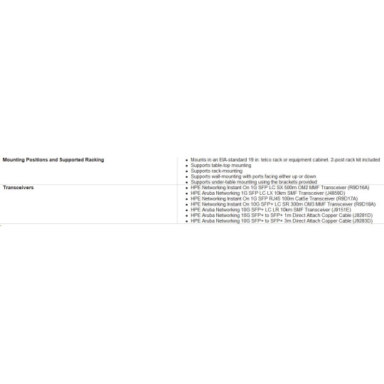 Aruba 10G SFP+ LC LR 10km SMF Transceiver (J9151E)