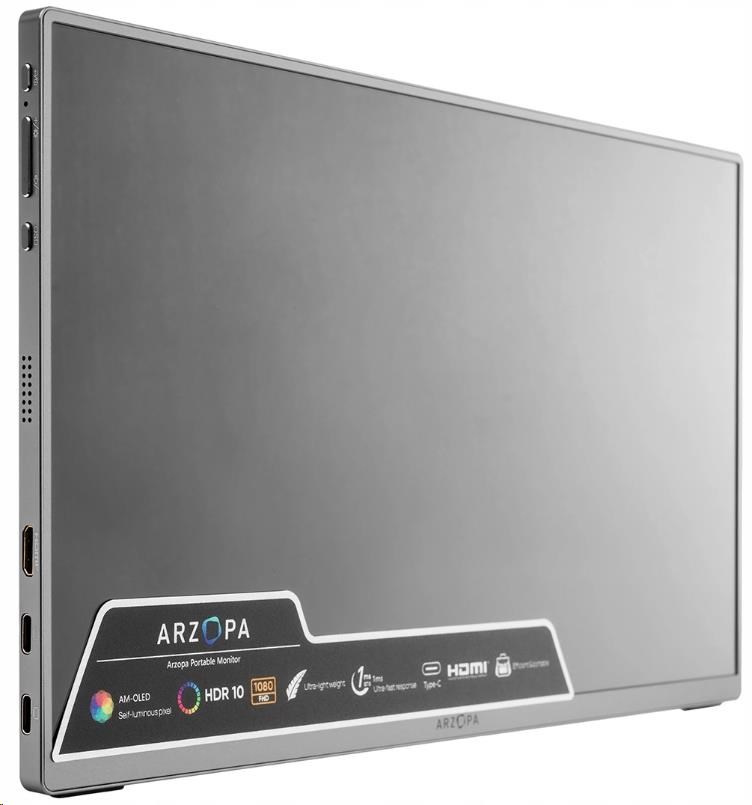 Arzopa A3C Pro je přenosný monitor, který kombinuje skvělou kvalitu obrazu s maximální funkčností. Díky panelu OLED poskytuje živé barvy, vynikající kontrast a rychlou dobu odezvy, takže je ideální pro hráče, tvůrce obsahu a ty, kteří potřebují další obrazovku pro mobilní práci. Jeho kompaktní design, nízká hmotnost a všestrannost vám umožní vzít si jej kamkoli - do kanceláře, kavárny nebo na výlet. Možnost změny orientace obrazovky z polohy na šířku na polohu na výšku usnadňuje přizpůsobení monitoru vašim aktuálním potřebám a zvyšuje pohodlí a produktivitu.