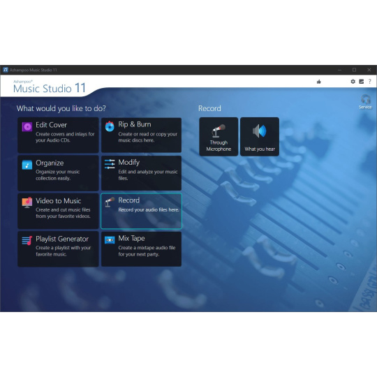 Ashampoo Music Studio je švýcarský armádní nůž pro vaši hudbu. Nabízí komplexní sadu nástrojů pro snadné úpravy, produkci, stříhání, mixování a organizaci hudby a zvukových souborů.