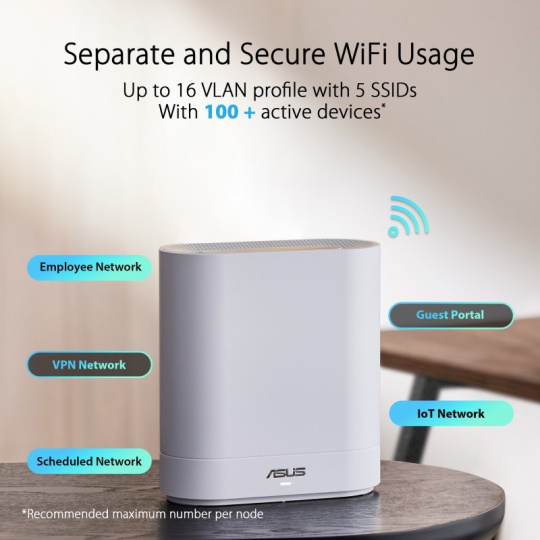 • Rozšiřitelné pokrytí WiFi – ExpertWiFi poskytuje až 12 síťových připojení uzlů pro rozšíření vaší obchodní sítě o funkce AiMesh.