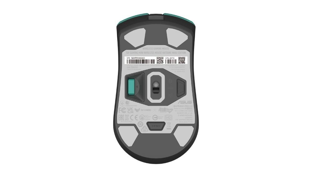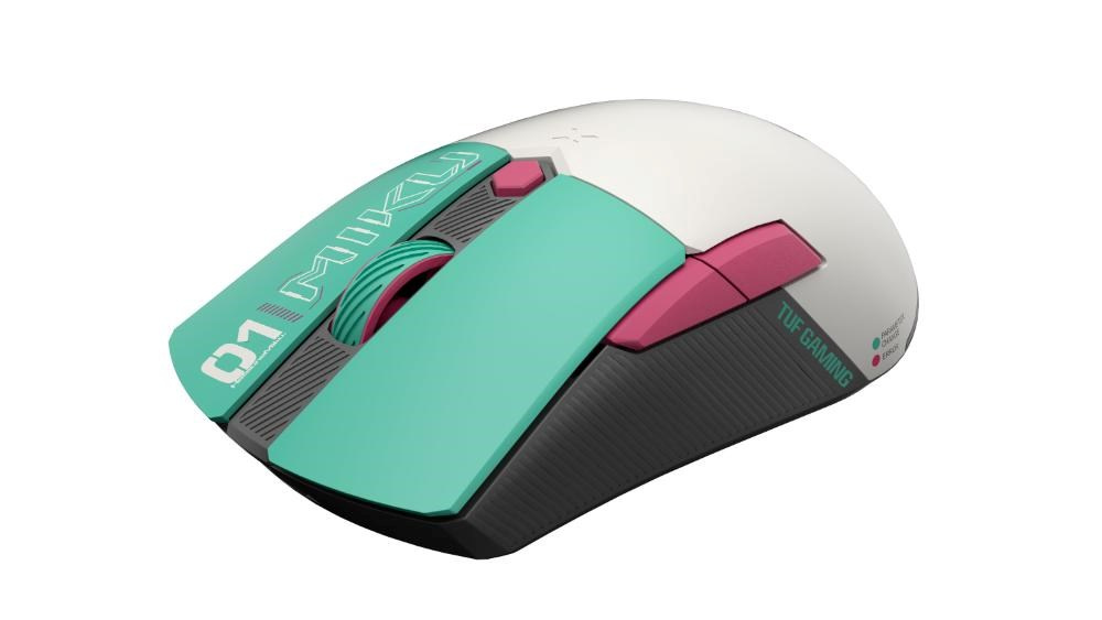 ASUS TUF Gaming Mini Wireless Mouse Hatsune Miku Edition je kompaktní 65gramová bezdrátová herní myš s třírežimovým připojením, snímačem s rozlišením 12 000 dpi, spínači s životností 100 milionů kliknutí, teflonovými nožičkami a šesti programovatelnými tlačítky.