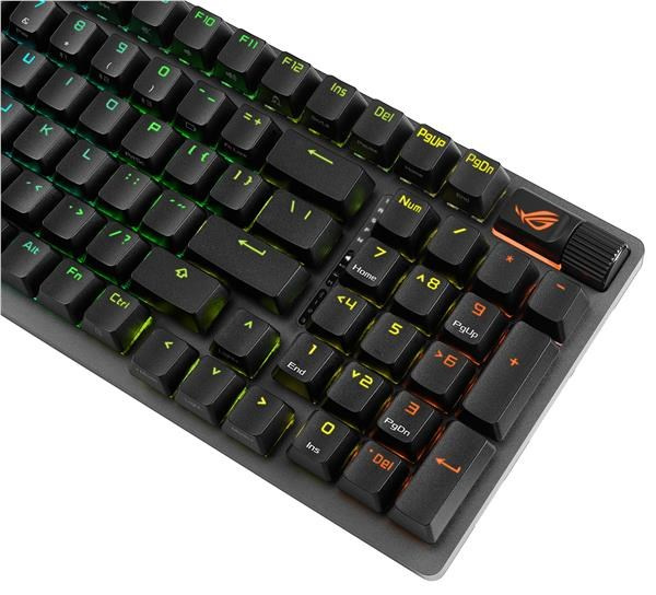 • Připojení ve třech režimech: Připojte se pomocí Bluetooth® (až tři zařízení), 2,4 GHz s bezdrátovou technologií ROG SpeedNova (až 1500 hodin výdrže baterie) nebo kabelového USB přepínače vyměnitelné za chodu: Předem namazané lineární přepínače NX Snow se stěnou konstrukce představce, která zvyšuje stabilitu a zabraňuje vnikání prachu