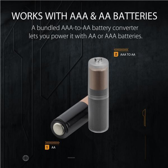 • Works with an AA or AAA batteries via the bundled battery converter holder for a 10% weight reduction