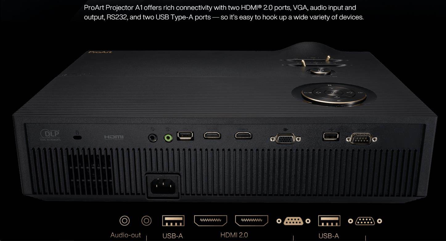 ASUS ProArt A1 LED professional projector- World’s first Calman Verified projector,? E < 2, 98% sRGB and Rec. 709, FHD (1920 x 1080), 3000 lumens, Four corner and 2D keystone correction, 1.2X zoom ratio, wireless mirroring