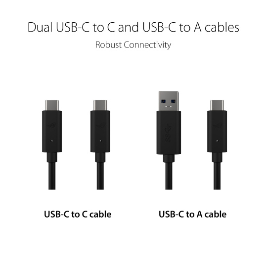Box pro externí M.2 NVMe SSD disky ROG Strix Arion - USB 3.2 GEN2 Type-C (10 Gb/s), dva kabely USB-C do USB-C a USB-A, instalace bez použití šroubováku, obsahuje chladicí podložky, vhodný pro PCIe 2280/2260/2242/2230 M key/B+M Key