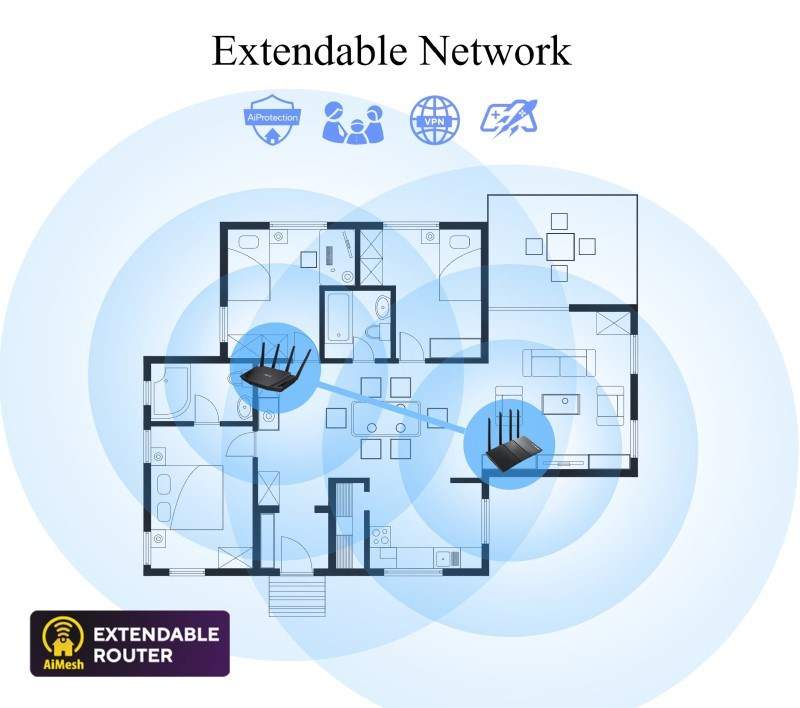 ASUS RT-AXE7800 (AXE7800) WiFi 6E Extendable Router, 2.5G port, AiMesh, 4G/5G Mobile Tethering