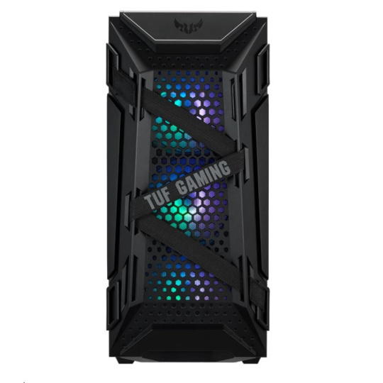 ASUS TUF Gaming GT301 ATX mid-tower compact case with tempered glass side panel, honeycomb front panel, 120mm AURA Addressable RGB fan, headphone hanger and 360mm radiator support.