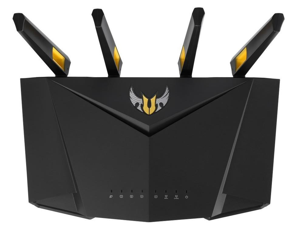 TUF Gaming AX3000 V2 Dual Band WiFi 6 Gaming Router with Mobile Game Mode, 3 steps port forwarding, 2.5Gbps port, AiMesh for mesh WiFi, AiProtection Pro network security Ultrafast WiFi 6 - Enjoy speeds up to 3000 Mbps and 4X network efficiency with OFDMA and 160 MHz channels. True Multi-Gigabit wired speeds - Aggregated 2 Gigabit LAN connections, wired 2.5Gbps port and WiFi 6. Easy Port Forwarding in 3 Steps - Open NAT makes port forwarding simple, eliminating frustrating and complicated manual configuration. ASUS AiMesh Support – Create a flexible, seamless whole-home mesh network with AiMesh-compatible routers. Tested Durability and Stable Operation - TUF Gaming AX3000 V2 is built to be durable and undergoes verified testing to ensure reliable, stable operation. 802.11a : up to 54 Mbps 802.11b : up to 11 Mbps 802.11g : up to 54 Mbps WiFi 5 (802.11ac) (1024QAM) : up to 867 Mbps WiFi 6 (802.11ax) (2.4GHz) : up to 574 Mbps WiFi 6 (802.11ax) (5GHz) : up to 2402 Mbps 2.4GHz 2x2 5GHz 2x2 RJ45 for 2.5 Gigabits BaseT for WAN x 1, RJ45 for Gigabits BaseT for LAN x 4, USB 3.2 Gen 1 x 1,.
