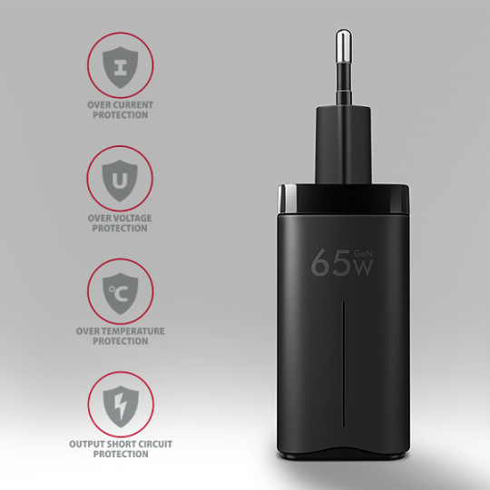 Pokročilý systém ochran na výstupu nabíjecího adaptéru chrání nabíjené zařízení před poškozením. Funkce nabíječky také zajistí rozpoznání nabíjeného zařízení a zvolení optimální rychlosti a průběhu nabíjení.