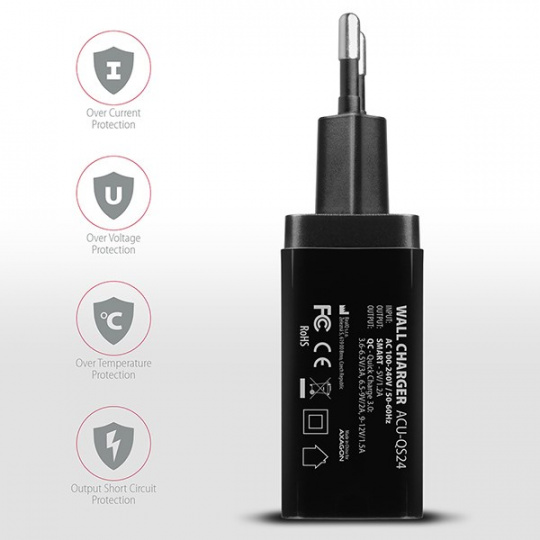 AXAGON ACU-QS24, QC & SMART nabíjačka do siete 24W, 2x port USB-A, QC3.0/AFC/FCP + 5V/1,2A
