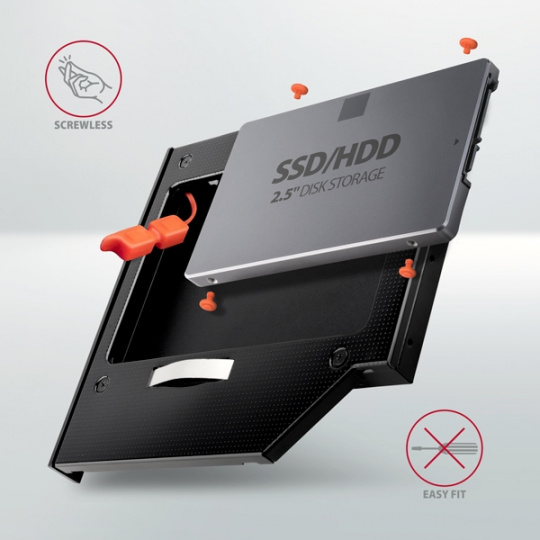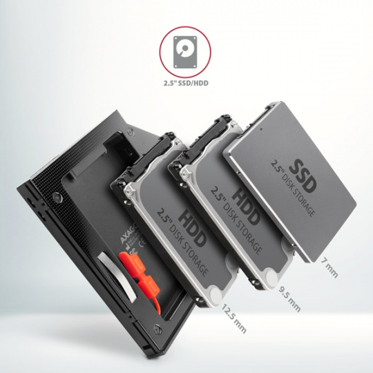 AXAGON RSS-CD12 rámeček pro 2.5" SSD/HDD do DVD slotu, 12.7 mm, LED, hliník