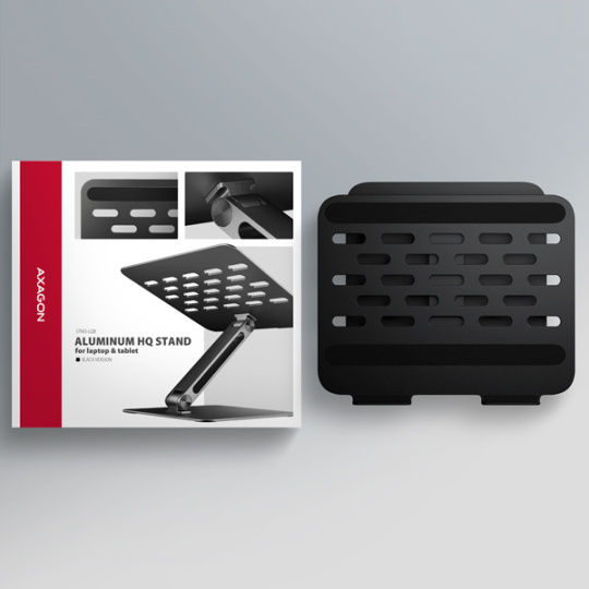 AXAGON STND-LQB, hliníkový HQ stojan pro notebooky 10"-17.3", nastavitelná výška a úhel, černý