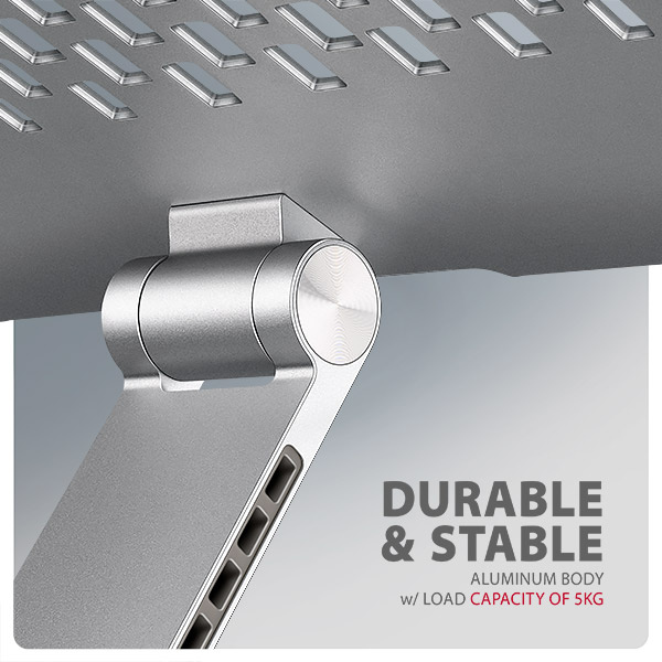 Podstavec pro notebook je vyroben z robustních hliníkových odlitků garantujících dlouhou životnost a spolehlivost. Díky protiskluzové úpravě zůstane vaše zařízení bezpečně na svém místě bez rizika nechtěných pohybů, aniž by došlo k jakémukoliv poškození povrchu notebooku nebo podložky. Tyto pečlivě navržené vlastnosti zaručují perfektní stabilitu pro váš notebook, tablet nebo oblíbenou knihu, což vám poskytne klid a pohodlí při každodenním používání.