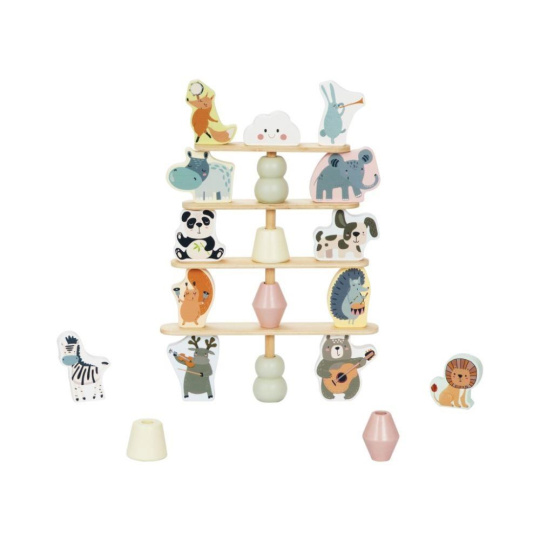 Dřevěná balanční hra s veselými zvířátky, destičkami, kostičkami a s duhou, je multifunkční hračkou, se kterou si užijí spoustu zábavy děti i celá rodina. Při této balanční hře může balancovat vše co najdete v balení. Jak vysokou pyramidu a co všechno k její výstavbě děti použijí je čistě na jejich fantazii. Při balanční hře děti zdokonalují jemnou motoriku, koordinaci, logické myšlení, prostorovou představivost, učí se soustředit se a trpělivosti..