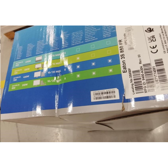 Eaton -Poškozený obal- 3S 850 FR, UPS 850VA / 510W, 8 zásuvek (4 zálohované), USB, 2x USB charge, české zásuvky