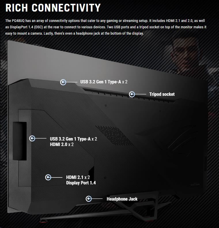 BAZAR - ASUS LCD 47.5" PG48UQ 3840x2160 ROG Swift OLED GAMING 4K, OLED, 450cs, 138Hz, 0.1ms, repro 10W, HDMI DP USB vesa