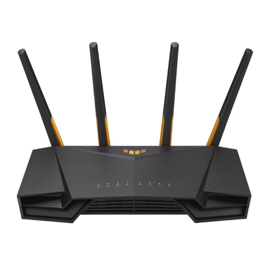 TUF Gaming AX3000 V2 Dual Band WiFi 6 Gaming Router with Mobile Game Mode, 3 steps port forwarding, 2.5Gbps port, AiMesh for mesh WiFi, AiProtection Pro network security Ultrafast WiFi 6 - Enjoy speeds up to 3000 Mbps and 4X network efficiency with OFDMA and 160 MHz channels. True Multi-Gigabit wired speeds - Aggregated 2 Gigabit LAN connections, wired 2.5Gbps port and WiFi 6. Easy Port Forwarding in 3 Steps - Open NAT makes port forwarding simple, eliminating frustrating and complicated manual configuration. ASUS AiMesh Support – Create a flexible, seamless whole-home mesh network with AiMesh-compatible routers. Tested Durability and Stable Operation - TUF Gaming AX3000 V2 is built to be durable and undergoes verified testing to ensure reliable, stable operation. 802.11a : up to 54 Mbps 802.11b : up to 11 Mbps 802.11g : up to 54 Mbps WiFi 5 (802.11ac) (1024QAM) : up to 867 Mbps WiFi 6 (802.11ax) (2.4GHz) : up to 574 Mbps WiFi 6 (802.11ax) (5GHz) : up to 2402 Mbps 2.4GHz 2x2 5GHz 2x2 RJ45 for 2.5 Gigabits BaseT for WAN x 1, RJ45 for Gigabits BaseT for LAN x 4, USB 3.2 Gen 1 x 1,.