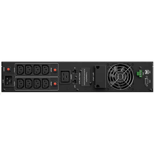 | Dodávka obsahuje | UPS, Uživatelský manuál, Rackmount lišty, Rackmount úchyty, Propojovací kabel (2), Telefoní kabel, USB kabel, Seriový kabel (RS232), M5X8L (8), M5X12L (12), Plastové podložky (8) Záslepka (12), PowerPanel® Business Edition software CD. Gumové podložky pod UPS(12) |