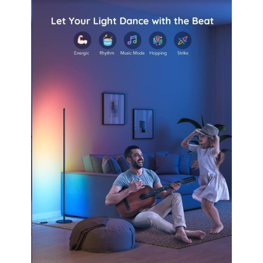 Zpříjemněte si svoji domácnost chytrou rohovou lampou Govee Smart Corner Floor Lamp, která zaujme na první pohled. Nabízí 16 milionů barev s 64 barevnými režimy a 6 režimy pro synchronizaci s hudbou. Světlo se ovládá hlasem přes Siri, Amazon Alexa nebo Google Assistant, přes aplikaci na chytrých telefonech a tabletech s operačními systémy iOS a Android nebo přes integrovaný ovladač. Lampa je vybavena úspornou LED žárovkou s technologií RGBICWW, která umožňuje zobrazení více barev najednou a má dlouhou životnost 50.000 hodin. Barevnou teplotu můžete upravovat v rozmezí od 3300K do 4300K při maximální svítivosti až 1000 lumenů.