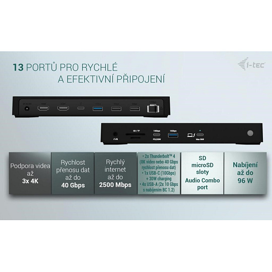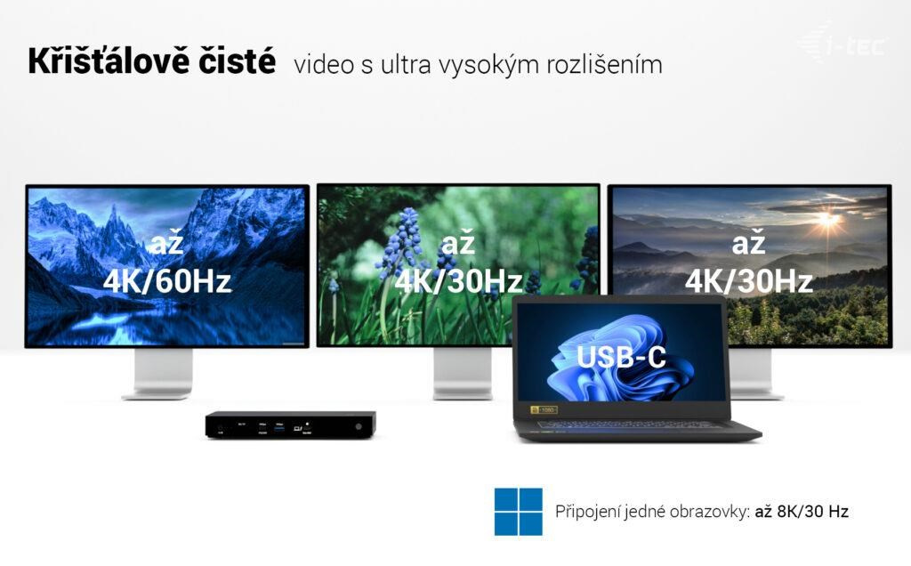 Ultra vysoký výkon, ultrarychlý přenos dat a podpora rozlišení až 8K/60 Hz. Jedna z nejvýkonnějších dokovacích stanic i-tec na trhu!