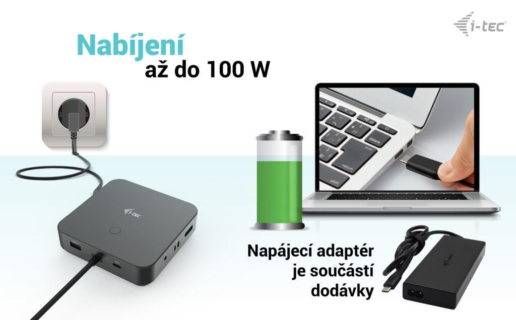 Poskytuje až 100W Power Delivery pro kompatibilní notebooky a tablety s rozhraním USB-C, USB4 a Thunderbolt. Hostitelské zařízení musí podporovat USB-C Power Delivery.