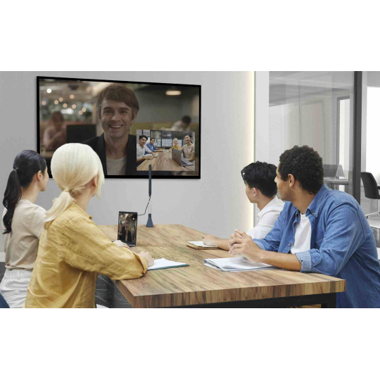 Přepínejte mezi ultraširokoúhlým objektivem se záběrem 120° a objektivem s automatickým zaostřováním se záběrem 80°, abyste získali dokonalý výhled podle svého scénáře. Ultraširokoúhlý objektiv je ideální pro konference v zasedací místnosti nebo prezentace. Objektiv s automatickým zaostřováním představuje praktickou alternativu pro sdílení dokumentů a individuální videohovory.