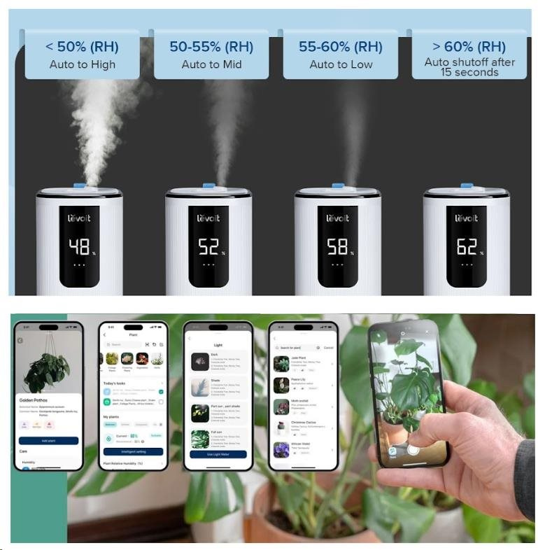Stejně jako lidé, i rostliny potřebují správnou vlhkost, aby se jim dobře dařilo. Se zvlhčovačem Levoit OasisMist Smart budou vaše květiny v dobré péči a skvělé kondici i během suchých období. Díky automatickému programu a možnosti nastavení časových harmonogramů poskytnete vašim rostlinám potřebnou péči.