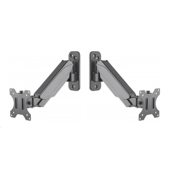 The Manhattan Universal Gas Spring Monitor Wall Mount offers a single-jointed gas-spring arm to securely hold one 17" to 32" TV or monitor. This mount's gas spring promotes easy movement of the monitor or TV to a more comfortable viewing angle with the lightest touch. Designed to be installed on the wall to give back much-needed desktop real estate, the Manhattan Universal Gas Spring Monitor Wall Mount provides more flexibility, reach, and overall enjoyment of whatever task is at hand.