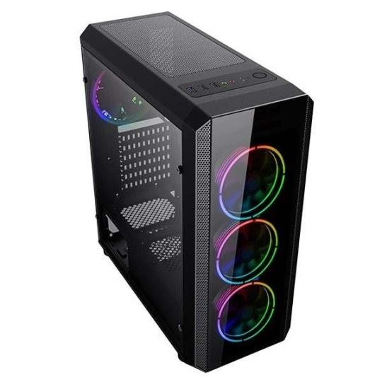 BAZAR - VeinX case Mars MAR01A Mid Tower, bez zdroje, 3xUSB, průhledná bočnice, 4xARGB Fan 120mm, černá - Poškozený obal