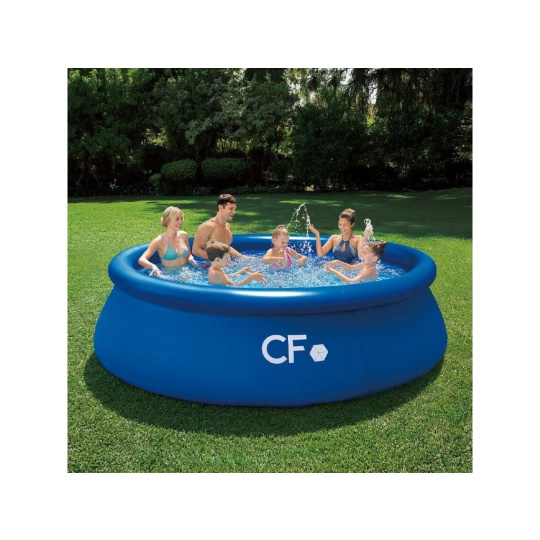 Připravte se na teplé počasí a nekonečné hodiny vodních radovánek na vlastním zahradě se samonosným nadzemním bazénem CF QUICK. Tento nadzemní bazén v modré barvě je navržen pro jednoduchou montáž a může být připraven během několika minut. Stačí jen připravit to správné místo na bazén, rozvinout bazénovou podložku, rozbalit bazén, nafouknout prstenec a napustit vodu. Stoupající voda bazén sama postaví. Tento nadzemní kruhový bazén s průměrem 366 cm je ideální pro celou rodinu a díky absenci pevných prvků je vhodný i pro menší děti (děti musí zůstat pod dohledem dospělé osoby). Bazén je vyroben z odolných a super pevných PVC materiálů, aby bylo zajištěno, že zůstane stát i přes veškerou zábavu, kterou tento bazén nabízí.