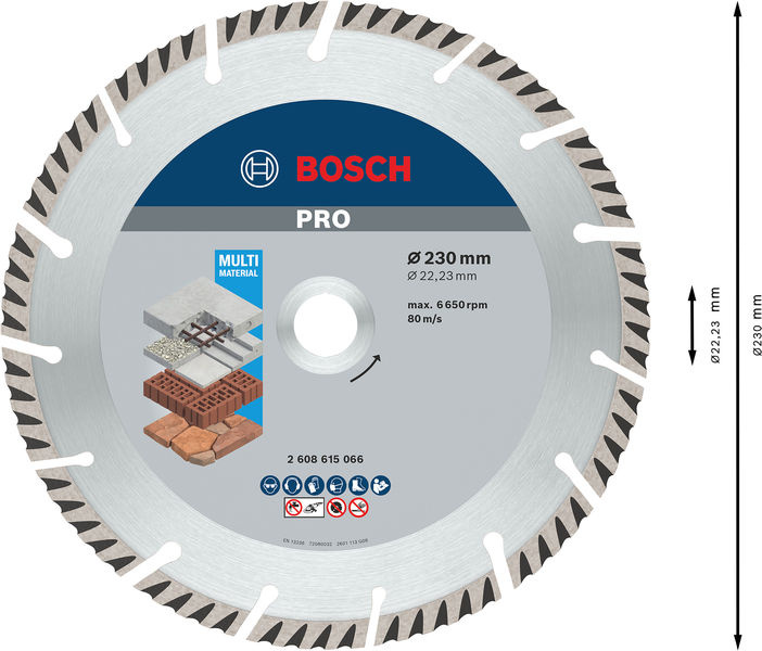 Vydrží až 1,5× déle než kotouč Bosch Eco for Universal - Univerzální diamantový řezací kotouč je pro profesionály na stavbě nepostradatelný. Diamantový řezací kotouč PRO Multi Material jsme vyrobili dostatečně pevný, aby si poradil s jakýmkoli materiálem, který potřebujete řezat. Pokročilé konstrukční prvky zajišťují, že kotouč PRO Multi Material vydrží déle než běžné diamantové kotouče. Segmenty s nízkým třením minimalizují opotřebení na straně kotouče a rychle odsávají prach z oblasti řezu, čímž zajišťují dlouhotrvající výkon. S otvorem 22,23 mm pro standardní úhlové brusky s pojistnou maticí.