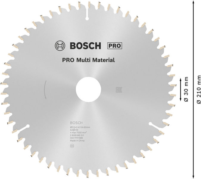 Bosch pilový kotouč PRO Multi Material pro okružní pilu, 210 × 2,4 × 30 mm