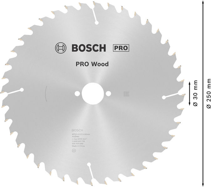 Bosch pilový kotouč PRO Wood pro okružní pilu, 250 × 3,2 × 30 mm, T40