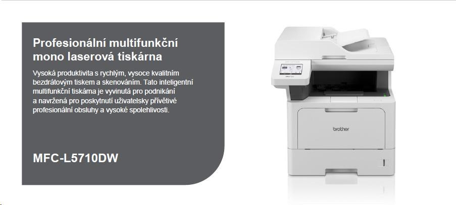 BROTHER multifunkce mono laserová MFC-L5710DW - A4 48ppm DUALSKEN 1200x1200 512MB 250listů LAN WIFI USB DUPLEX ADF50