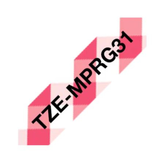 Brother TZe-MPRG31 - se vzorem červených kachliček, šířka 12 mm. Páska je dlouhá 4 metry. Kompatibilní s tiskárnami štítků P-touch, které zobrazují logo TZ nebo TZe na krytu kazety s páskou..