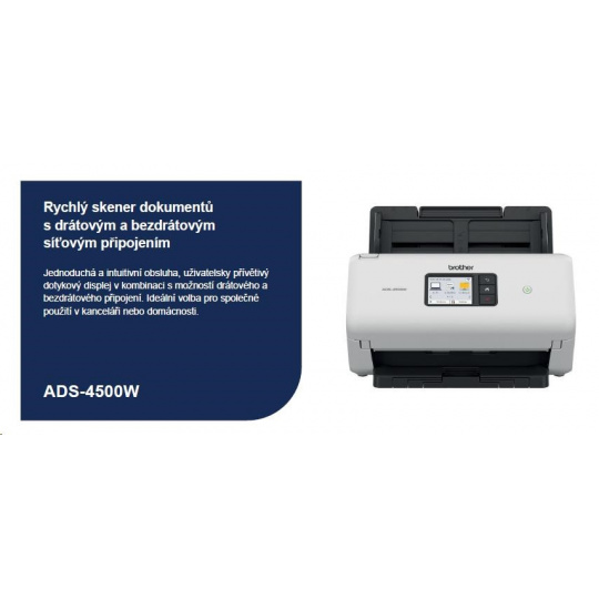 BROTHER skener ADS-4500W DUALSKEN A4 35ppm/70dual 600x600 60ADF USB LAN WIFI - display 7.1cm