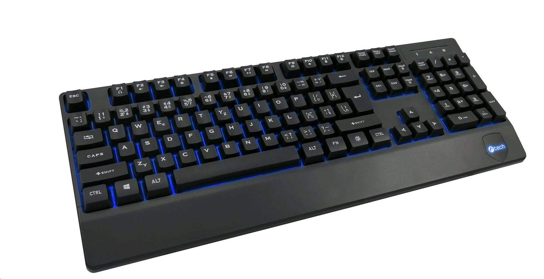 Klávesnice C-TECH KB-104BK, USB, 3 barvy podsvícení, černá, CZ/SK