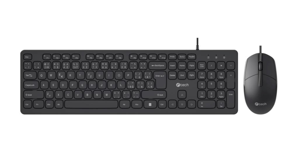 C-TECH Klávesnice KBM-105, drátový combo set s myší, USB, CZ/SK