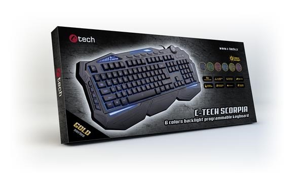 C-TECH klávesnice SCORPIA V2 (GKB-119), herní, CZ/SK, 7 barev podsvícení, programovatelná, černá, USB